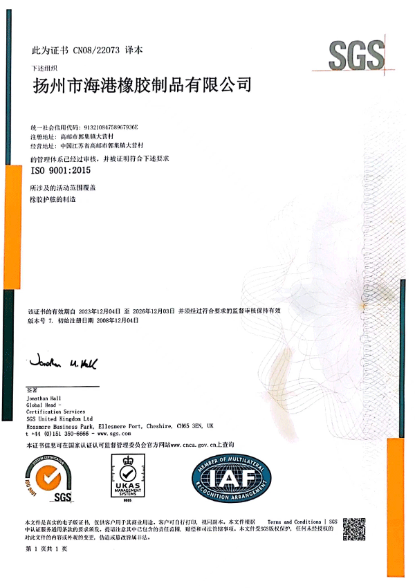 凡在海港橡膠購買的產(chǎn)品享受提供的終身維護服務。